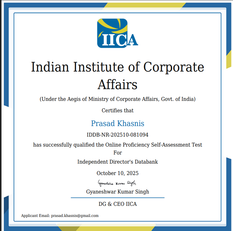 Leveraging an Independent Director's mindset and Corporate governance expertise, along with Engineering management skillsets.